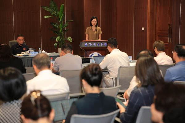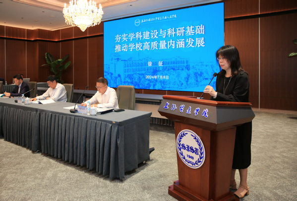 徐征副校长以“夯实学科建设与科研基础,推动学校高质量内涵发展”为主题汇报了科研提质工程、硕士学位授予单位提早培育建设和校级跨学科产学研平台的建设成效,充分展示了学校科研成果在质量和数量上的双突破,深刻体现了校院两级对于学校内涵式发展路径的积极探索与实践。
