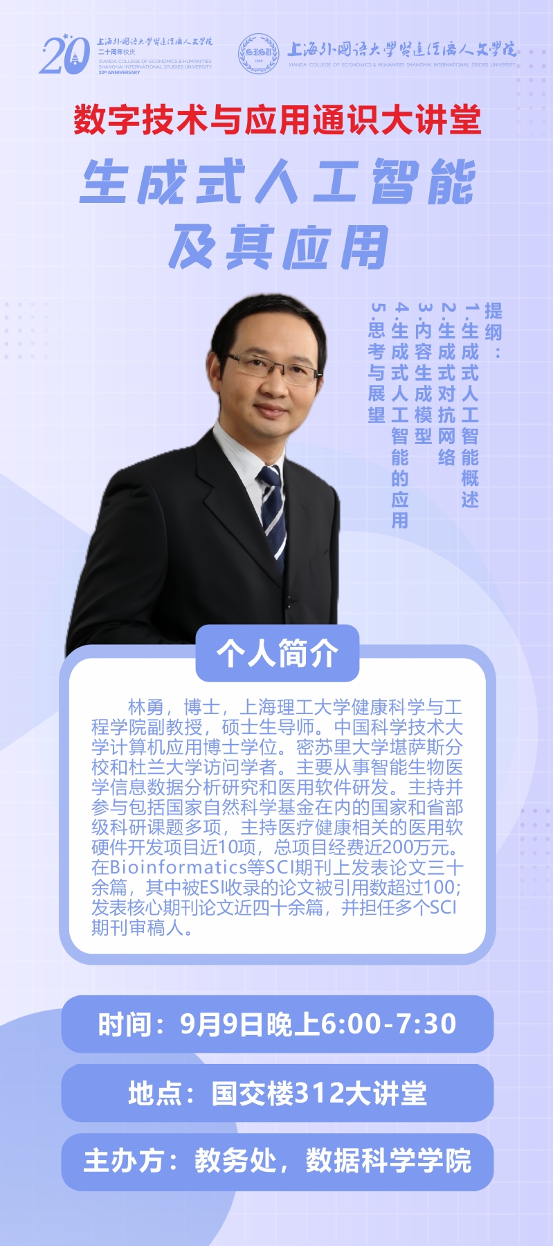 9月9日 林勇:生成式人工智能 及其应用(数字技术与应用通识大讲堂)