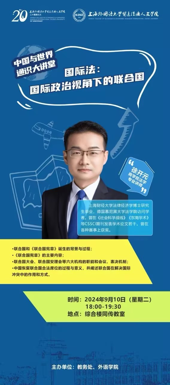 9月10日 徐开元:国际法:国际政治视角下的联合国(“中国与世界”通识大讲堂)