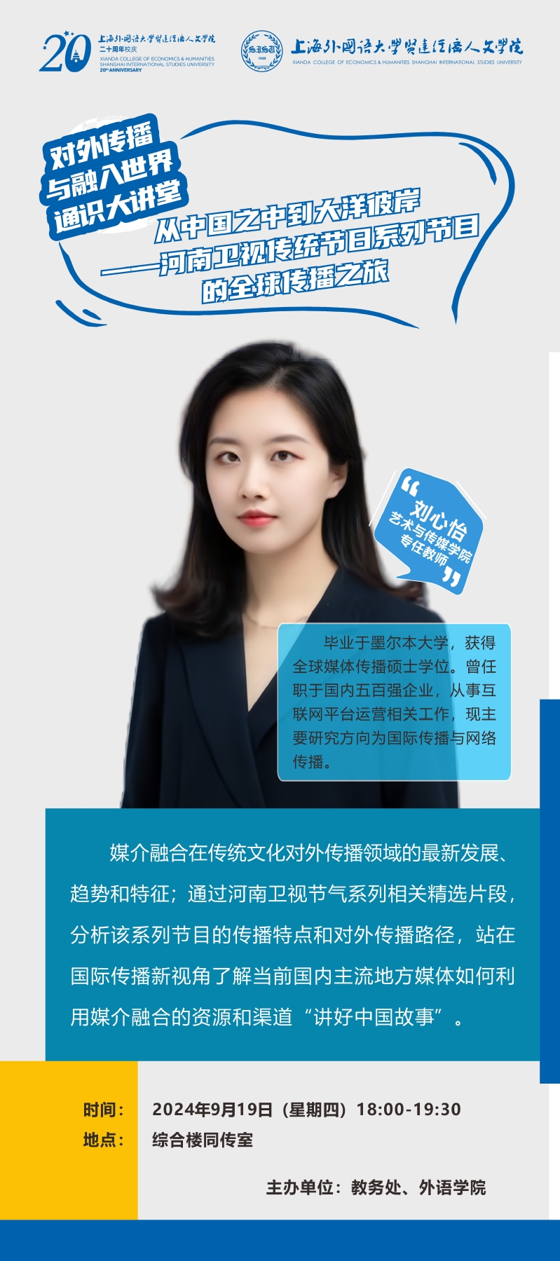 9月19日 刘心怡:从中国之中到大洋波岸——河南卫视传统节日系列节目的全球传播之旅(对外传播与融入世界通识大讲堂)