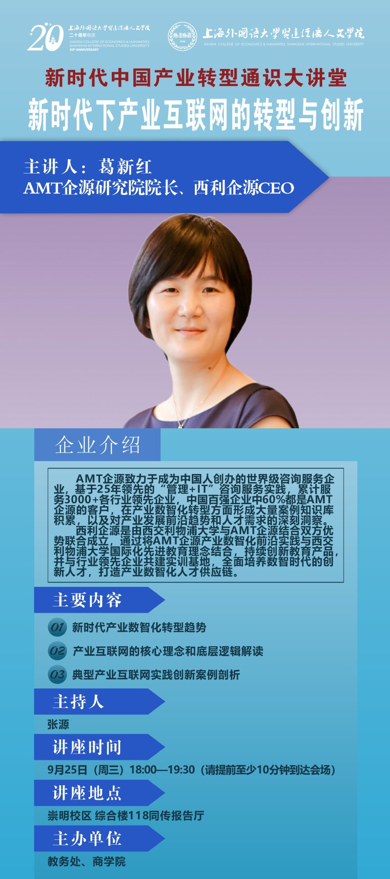 9月25日 葛新红:新时代下产业互联网的转型与创新(新时代中国产业转型通识大讲堂)