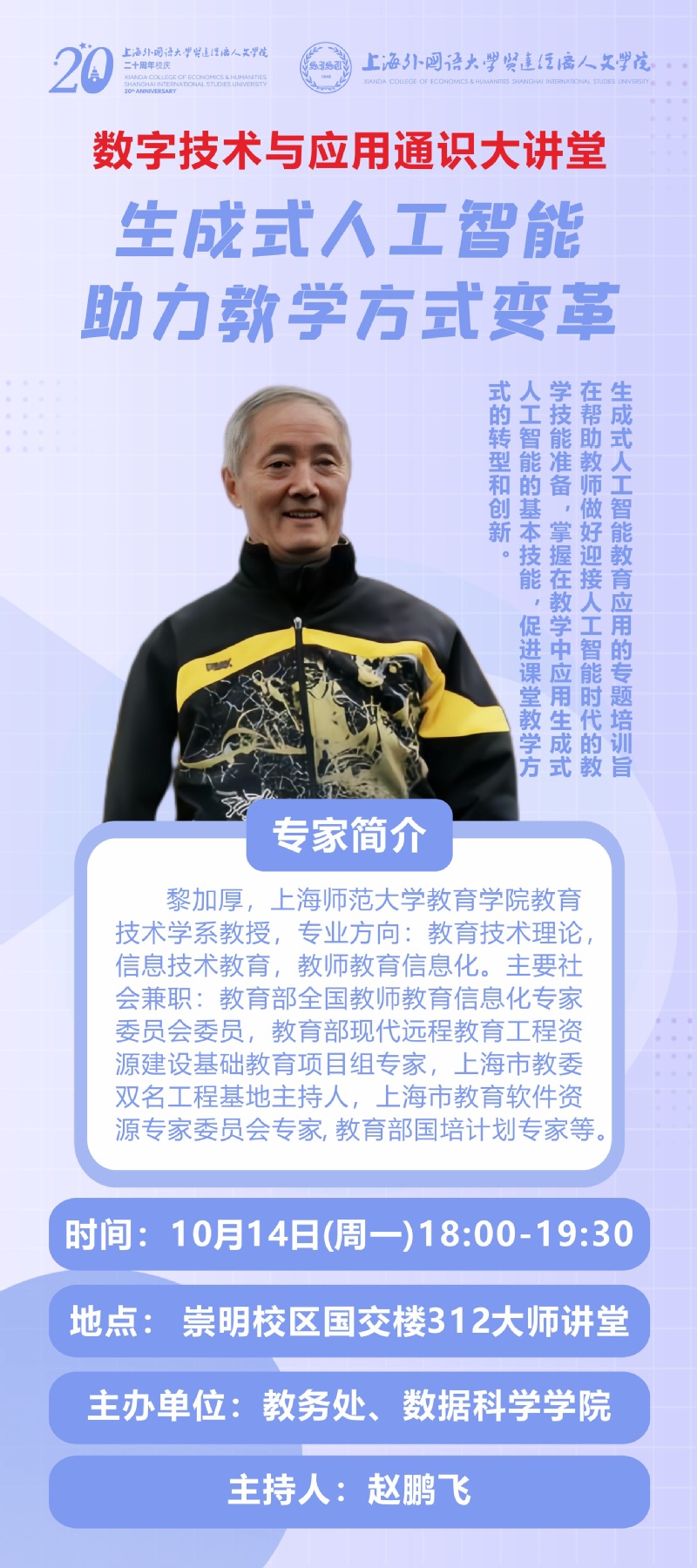 10月14日 黎加厚:生成式人工智能助力教学方式变革(数字技术与应用通识大讲堂)