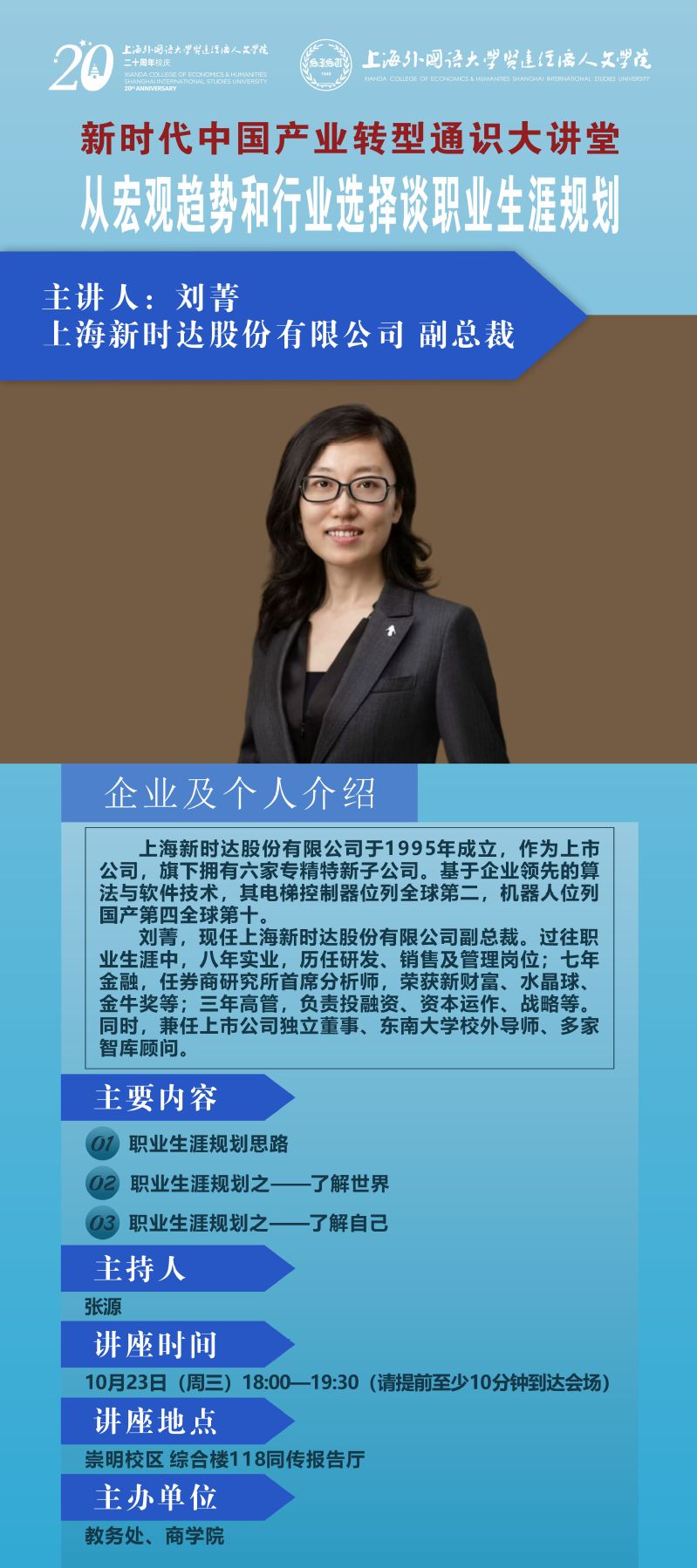 10月23日 刘菁:从宏观趋势和行业选择谈职业生涯规划(新时代中国产业转型通识大讲堂)