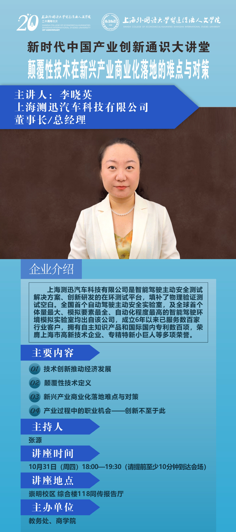 10月31日 李晓英:颠覆性技术在新兴产业商业化落地的难点与对策(新时代中国产业创新通识大讲堂)