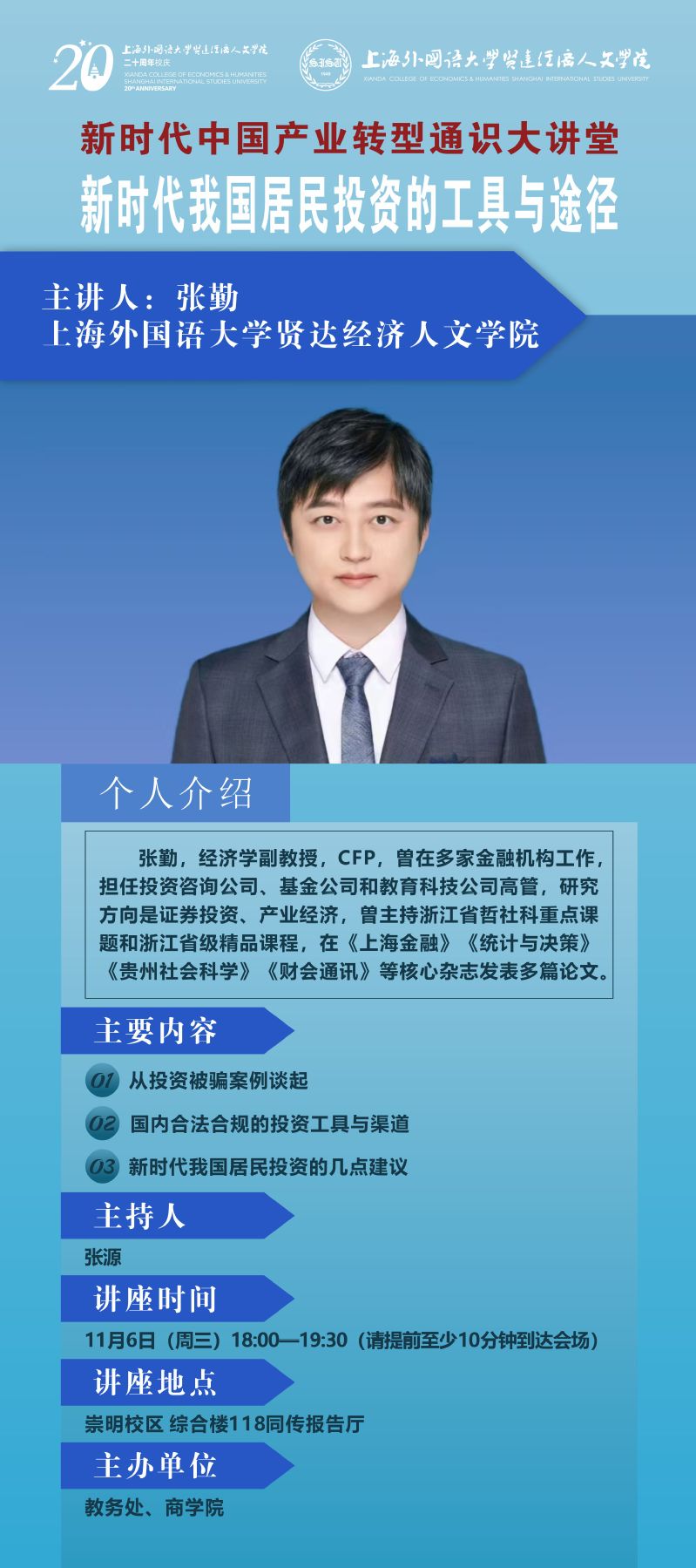 11月6日 张勤:新时代我国居民投资的工具与途径(新时代中国产业转型通识大讲堂)