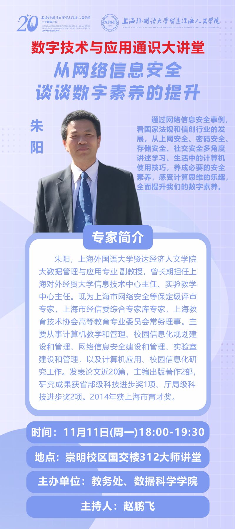 11月11日 朱阳:从网络信息安全谈谈数字素养的提升(数字技术与应用通识大讲堂)