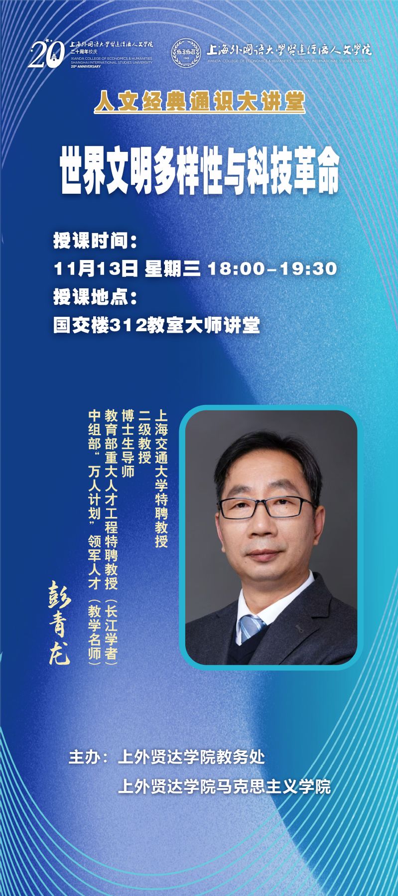 11月13日 彭青龙:世界文明多样性与科技革命(人文经典通识大讲堂)