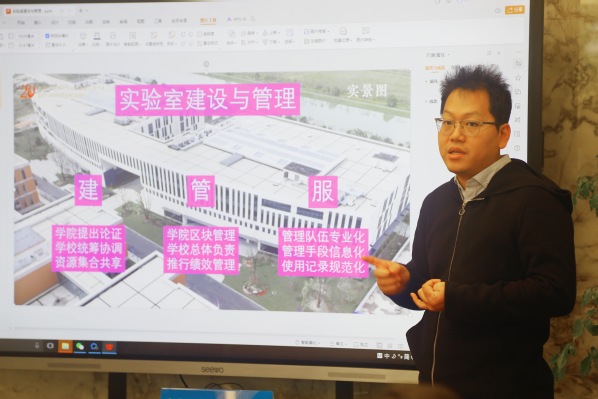 校长助理、国际交流学院院长陈娴详细介绍了学校的历史、办学理念、师资队伍及其国际化教学环境,尤其是崇明校区的现代化设施和文化活动对人才培养工作的助益。她展望了学校通过深化国际合作、增设跨学科专业和加强科研创新,培养全球化创新人才的未来方向。商学院院长王晓光、商学院副院长余婕进一步分享了学校在经管类学科建设中的创新举措,包括跨学科课程的融合、案例教学的运用以及与行业紧密结合的实践项目。国际交流合作处处长王婷展示了学校在国际合作方面的成就和规划,详细介绍了与多个国家和地区高校的合作项目。信息技术与实验管理中心副处长李国睿则分享了实验室建设与管理中的经验成果,特别提到了智能化管理系统在提高实验室使用率和确保安全规范中的作用。