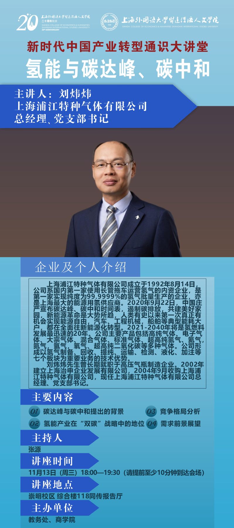 11月13日 刘炜炜:氢能与碳达峰、碳中和(新时代中国产业转型通识大讲堂)