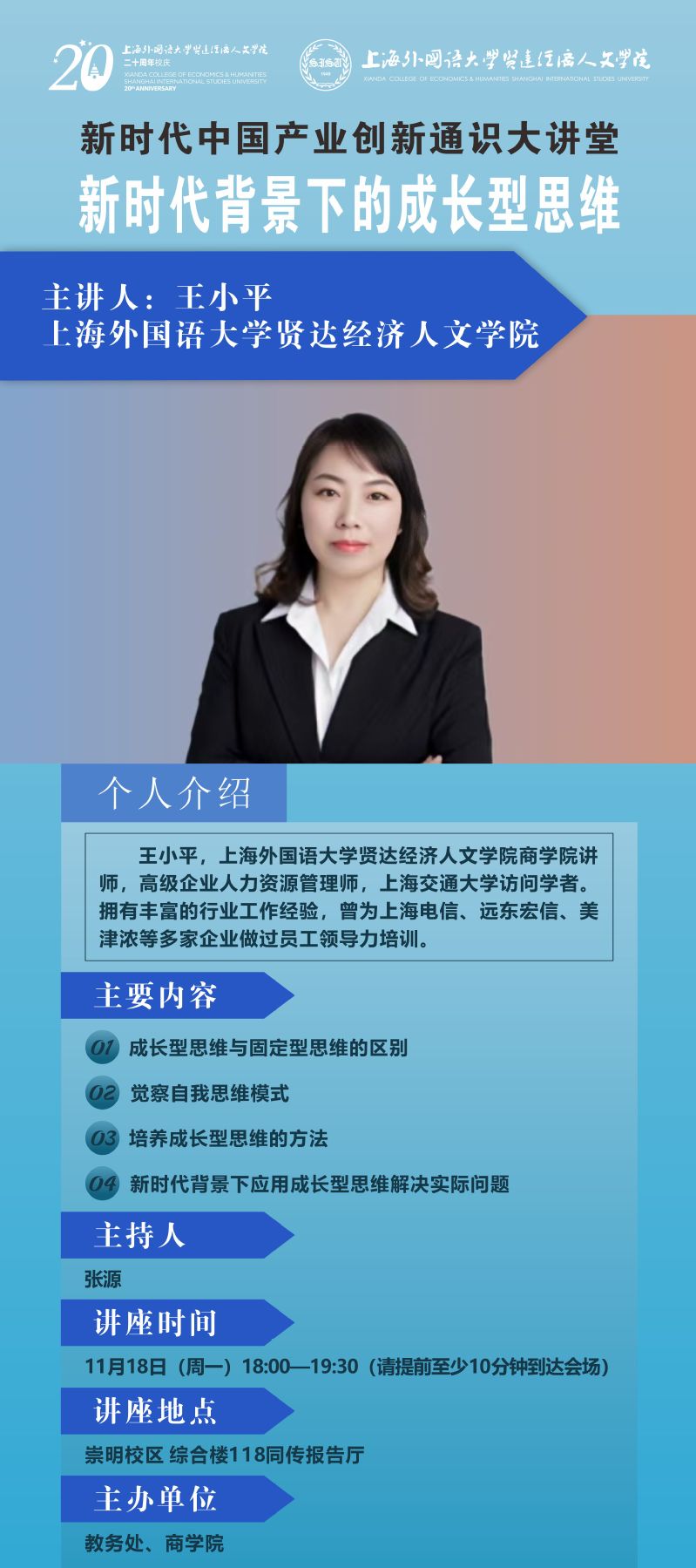 11月18日 王小平:新时代背景下的成长型思维(新时代中国产业创新通识大讲堂)