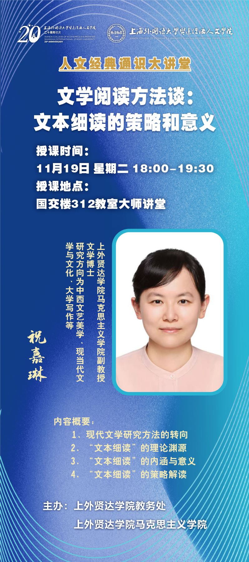 11月19日 祝嘉琳:文学阅读方法谈:文本细读的策略和意义(人文经典通识大讲堂)
