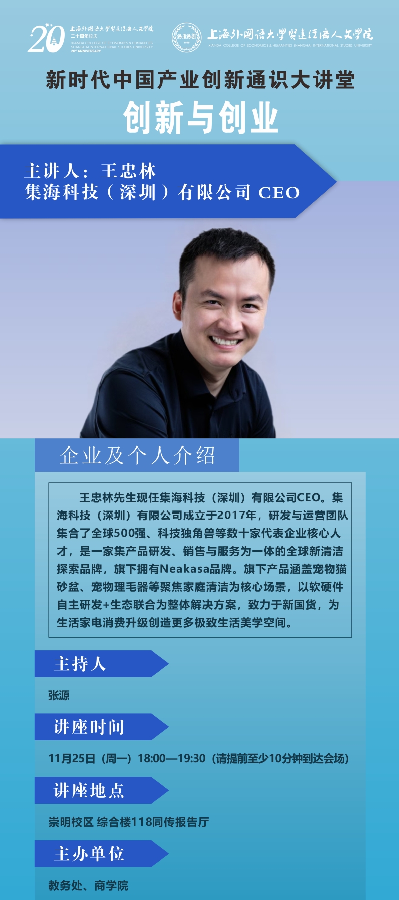 11月25日 王忠林:创新与创业(新时代中国产业创新通识大讲堂)