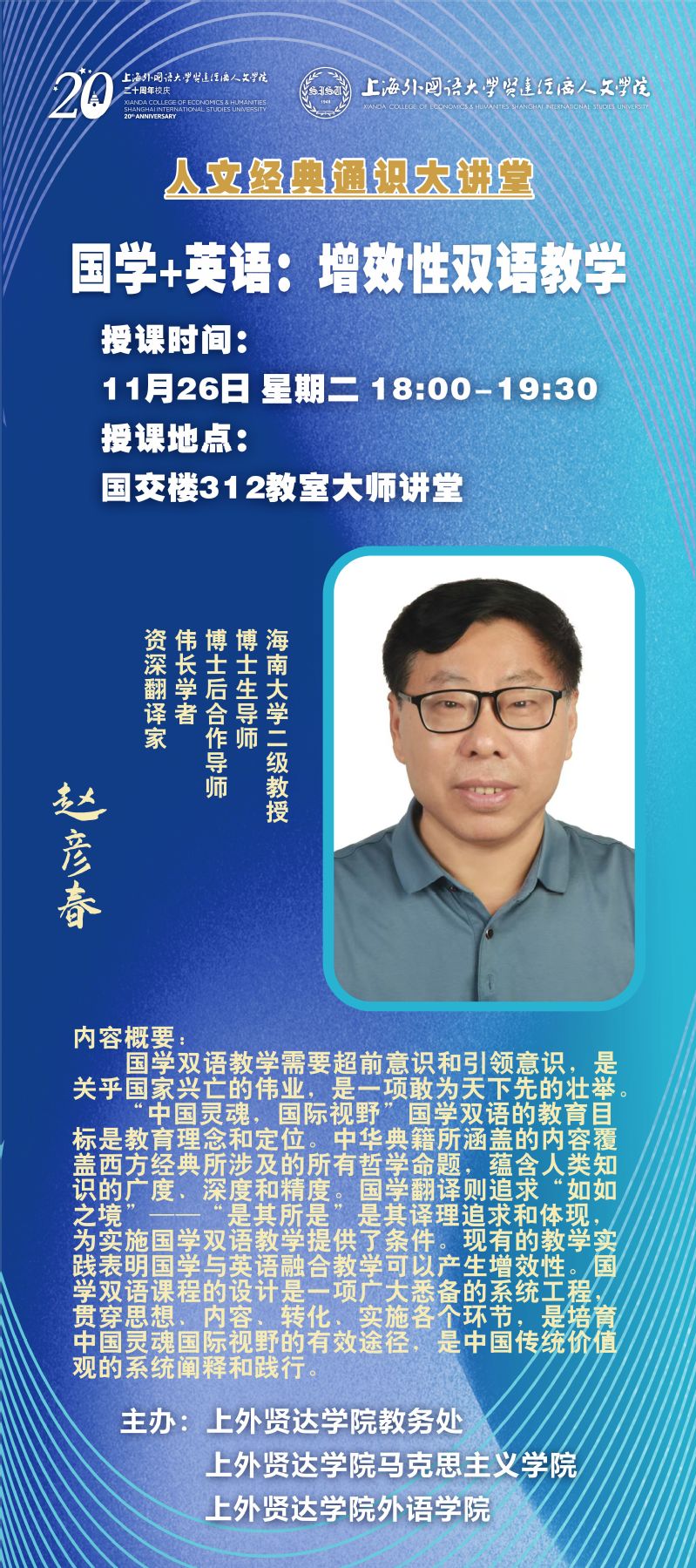 11月26日 赵彦春:国学+英语:增效性双语教学(人文经典通识大讲堂)