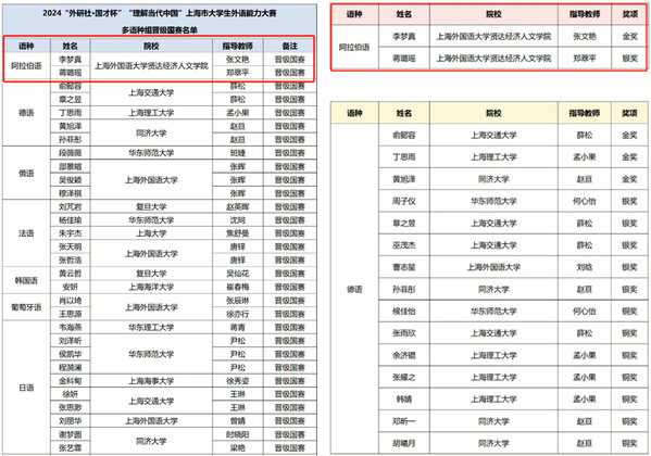 近日,2024“外研社·国才杯”“理解当代中国”全国大学生外语能力大赛(多语种组)省赛圆满落幕,新葡的京集团4321外语学院22级阿拉伯语系李梦真、蒋璐瑶同学,独揽上海市赛阿拉伯语语种的金银奖,并成功晋级国赛。
