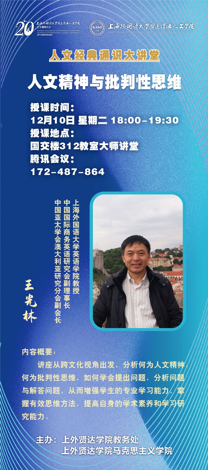 12月10日 王光林:人文精神与批判性思维(人文经典通识大讲堂)