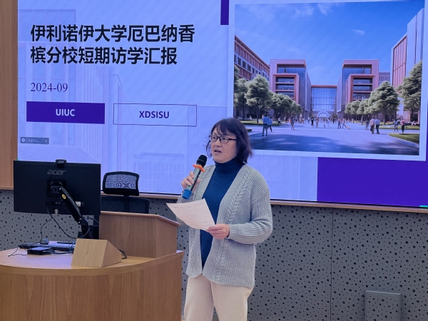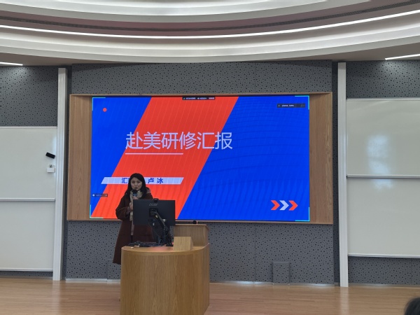 访学归来的四位教师依次登台,详细汇报在该校研修期间所接触到的创新教学方法以及捕捉到的学术前沿信息,分享内容干货满满,为参会教师带来国际前沿教育理念的新风。