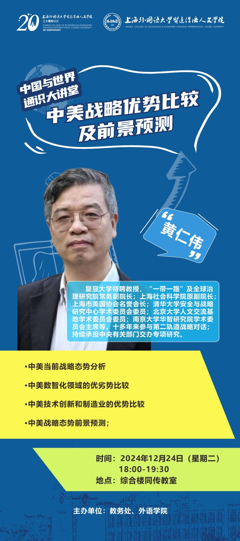 12月24日 黄仁伟:中美战略优势比较及前景预测(中国与世界通识大讲堂)