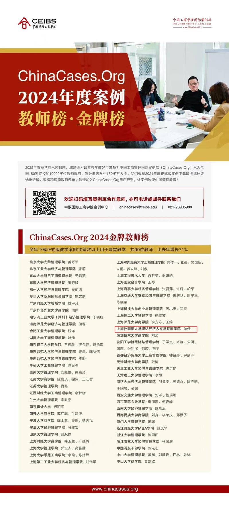 耿仟、牛佳老师和袁怡婷老师的入选,是对他们在案例研究与教学领域深耕细作的褒奖,更是商学院在案例教学领域多年来坚持创新与实践的有力见证。这一荣誉不仅代表着个人的成就,更象征着商学院在推动中国工商管理教育国际化进程中所发挥的积极作用。