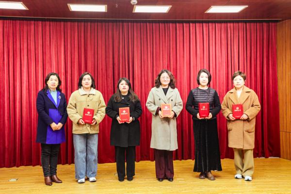 会上,赵荣善书记送节日问候,祝贺受表彰者,强调2025 年学校落实思想精神,推动女大学生和女教职工全面发展,望女教职工发扬“四自”精神。郑虹副书记宣读表彰决定,大会表彰1名市教育系统三八红旗手、12名校三八红旗手及6个校三八红旗集体,与会领导为获奖代表颁奖。