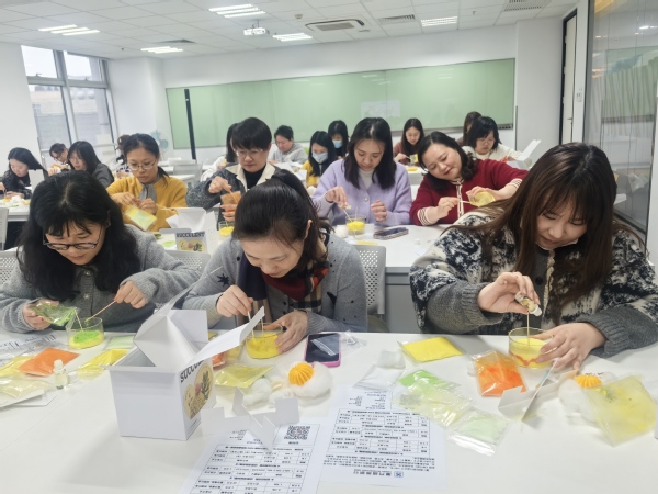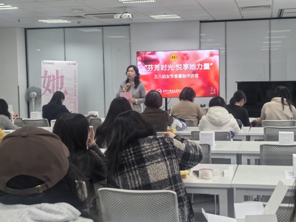 3月3日下午,虹口校区行政楼 1503 室里,一场“芬芳时光悦享她力量”香薰蜡烛沙龙活动浪漫开启。校妇工委主任曹英老师在活动伊始发表讲话,寄语新葡的京集团女教职工,要以习近平新时代中国特色社会主义思想为指引,深入贯彻落实党的二十大精神,聚焦立德树人根本任务,开拓创新、奋发有为,撑起教育事业“半边天”。活动现场,专业老师详细讲解香薰蜡烛的制作方法,30 多位参与者全神贯注聆听后,迫不及待投入创作。大家挑选不同颜色的蜡烛颗粒、精油,调配比例、倒入模具,最终制作出形态各异、香气宜人的香薰蜡烛,现场其乐融融。