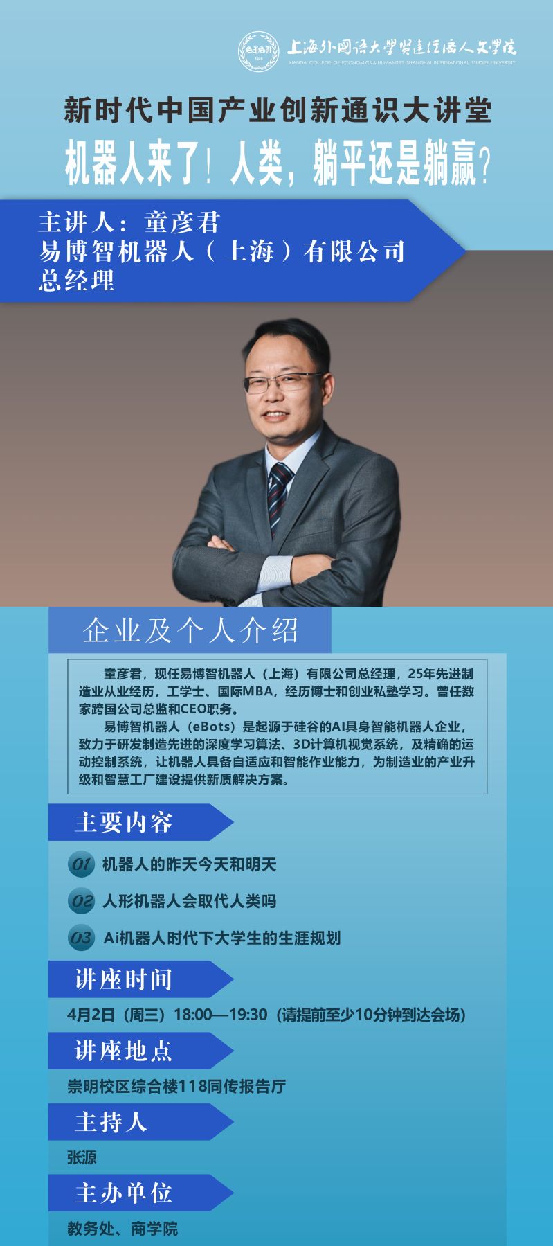 4月2日 童彦君:机器人来了!人类,躺平还是躺赢?(新时代中国产业创新通识大讲堂)