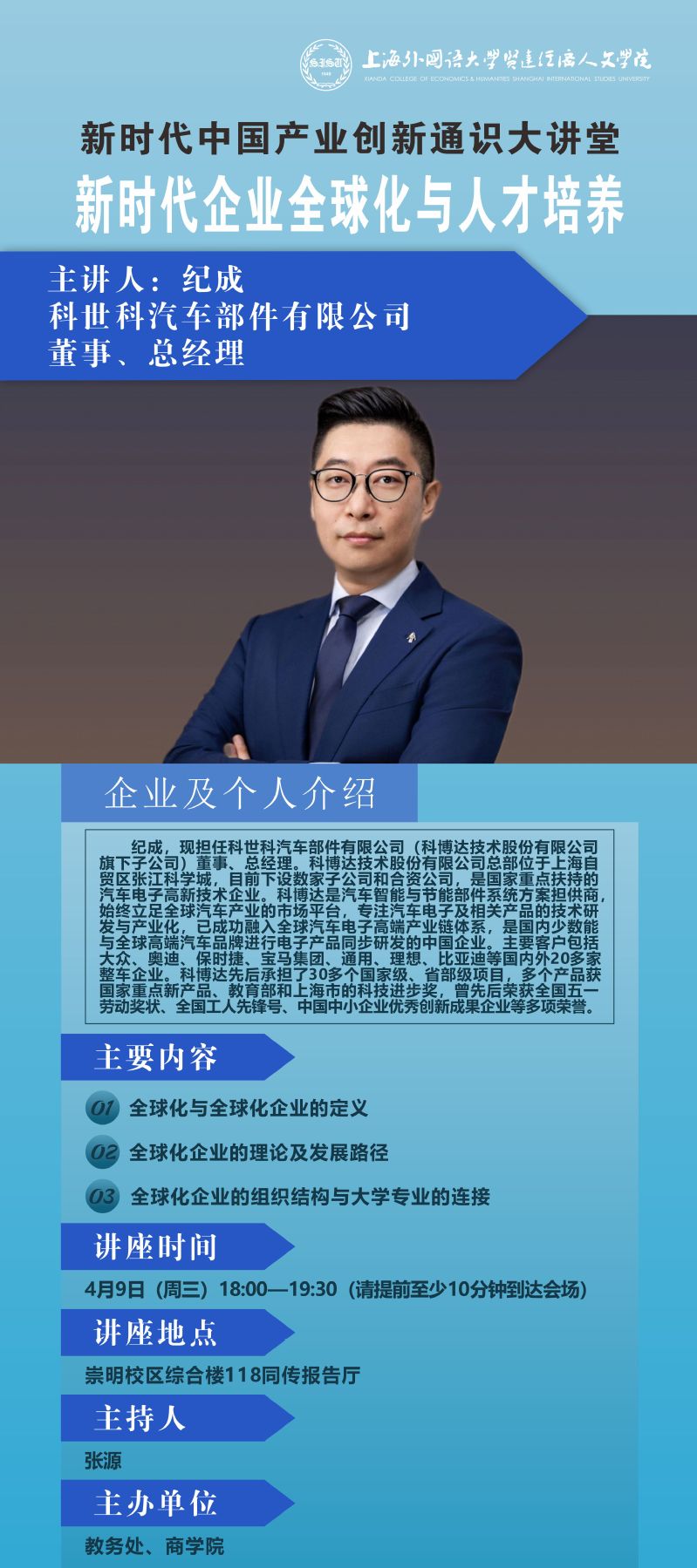 4月9日 纪成:新时代企业全球化与人才培养(新时代中国产业创新通识大讲堂)