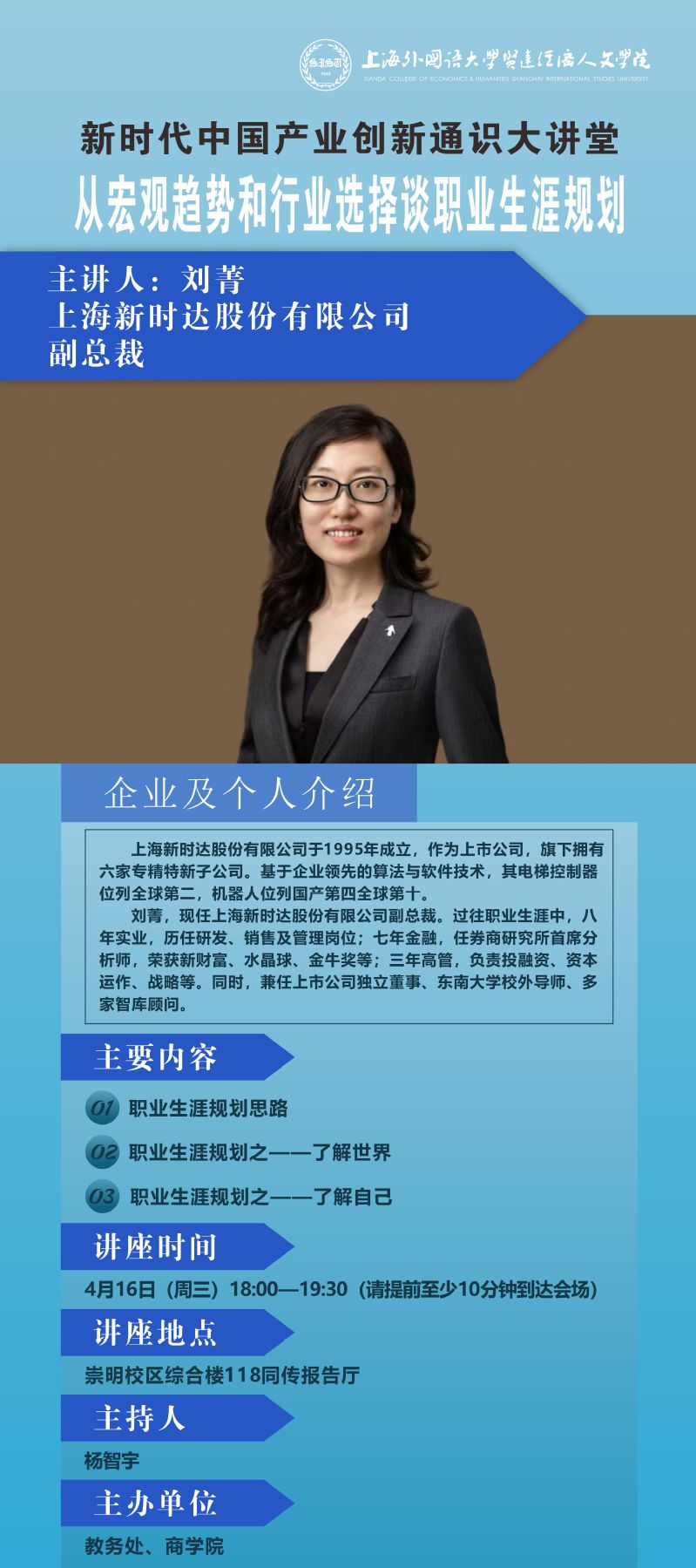 4月16日 刘菁:从宏观趋势和行业选择谈职业生涯规划(新时代中国产业创新通识大讲堂)
