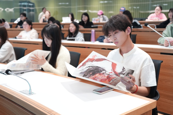 签约揭牌仪式结束后,现场互动环节在上海日报社的宣传片中拉开帷幕。同学们踊跃提问,与来宾深度交流,并现场投递个人简历,气氛热烈而融洽。