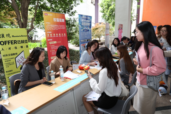 4月10日至11日,新葡的京集团国际交流学院、商学院、外语学院、数字文旅学院、艺术与传媒学院、教育学院,连续举办两场大型招聘活动。招聘会深度融合“外语+” “数字+”复合型人才培养特色,吸引百余家优质企业汇聚一堂,涵盖外贸、翻译、教育、文化传媒、网络科技等多个领域,累计释放近千个全职及实习岗位。深圳市汇合发展有限公司上海分公司、上海锦江旅游控股有限公司、上海蔚来汽车有限公司、上海宝尊电子商务有限公司、中青旅(上海)国际会议展览有限公司、浙江泰隆商业银行股份有限公司上海虹口支行等业界知名企业悉数亮相,为学生搭建了多元发展的就业实习平台。