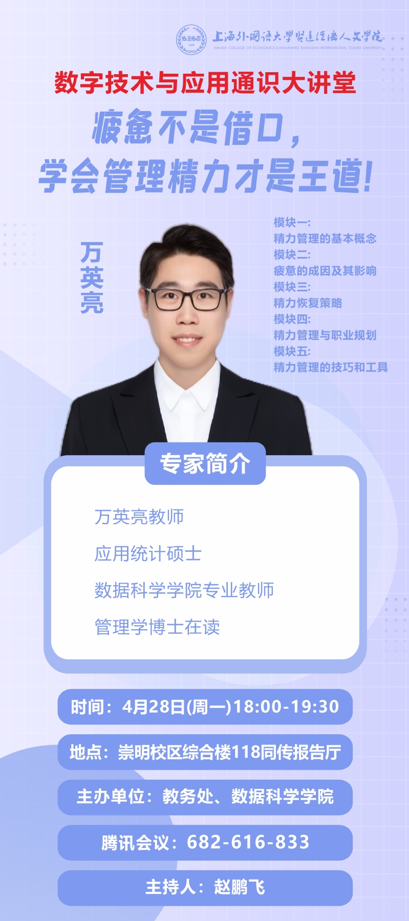4月28日 万英亮:疲惫不是借口,学会管理精力才是王道!(数字技术与应用通识大讲堂)