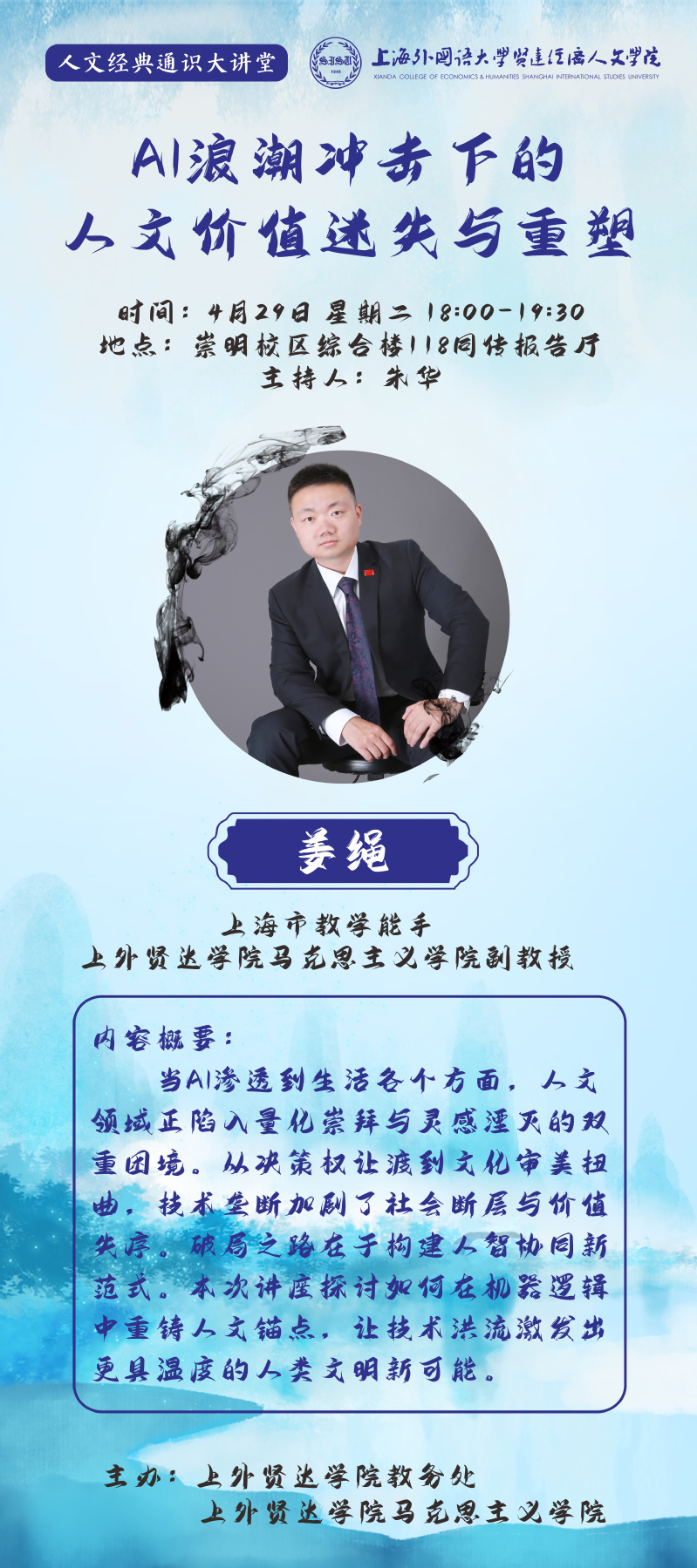 4月29日 姜绳:AI浪潮冲击下的人文价值迷失与重塑(人文经典通识大讲堂)