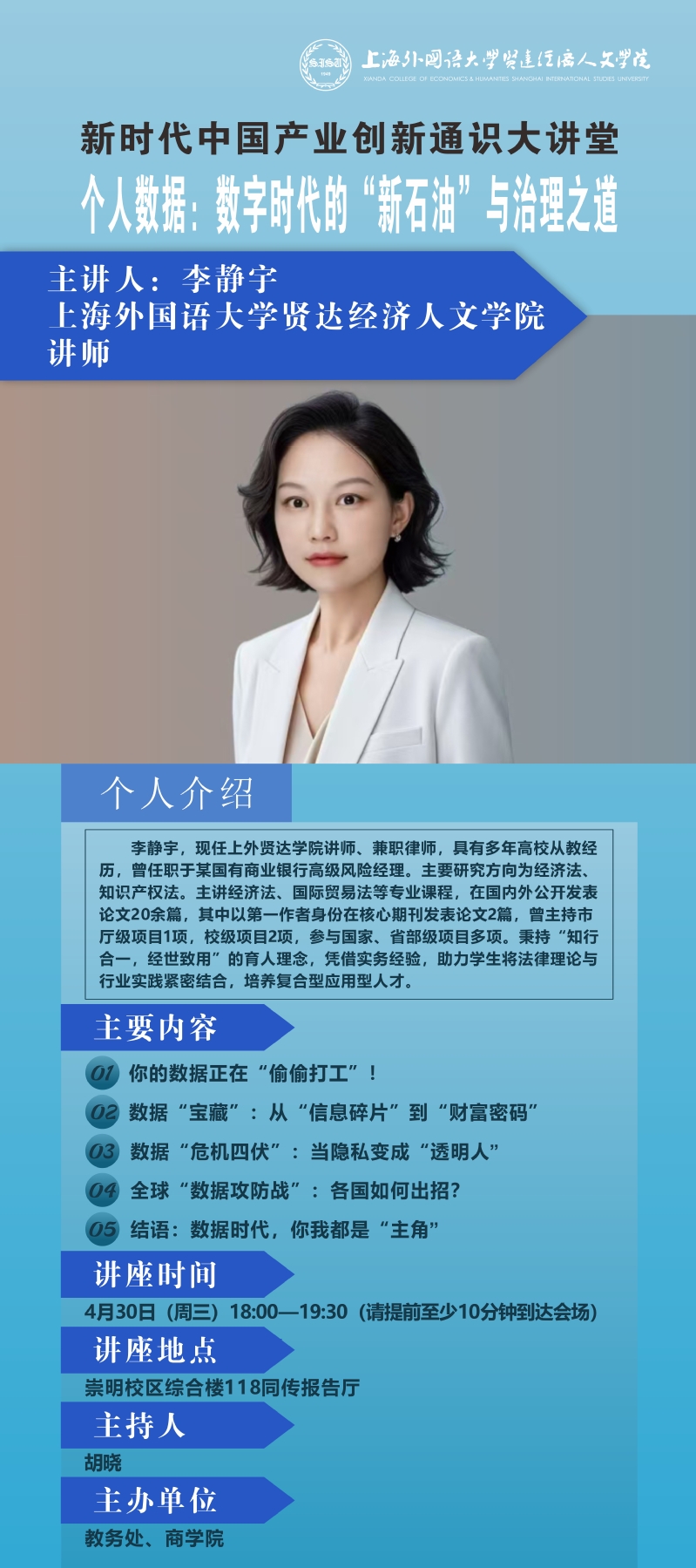 4月30日 李静宇:个人数据:数字时代的“新石油”与治理之道(新时代中国产业创新通识大讲堂)