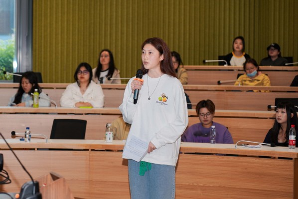 随后,由视觉传达设计系主任王琴副教授牵头的“海风绘影·流动艺术集”校企合作项目正式启动,参与本次实践项目的三位学生代表 —— 柴彤、刘子寒、陈炜豪带领其作品,结合设计图稿阐释作品理念。作品以崇明生态元素为灵感,融合数字媒体艺术与公共空间美学,展现了学生扎实的专业能力与创新思维。