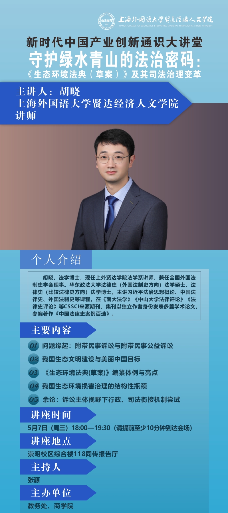 5月7日 胡晓:守护绿水青山的法治密码:《生态环境法典(草案)》及其司法治理变革(新时代中国产业创新通识大讲堂)