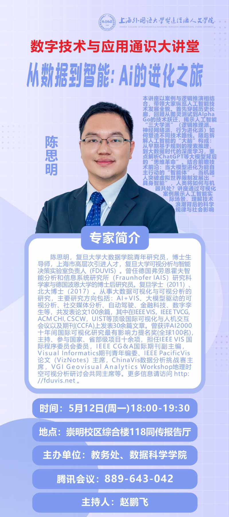 5月12日 陈思明:从数据到智能:AI的进化之旅(数字技术与应用通识大讲堂)