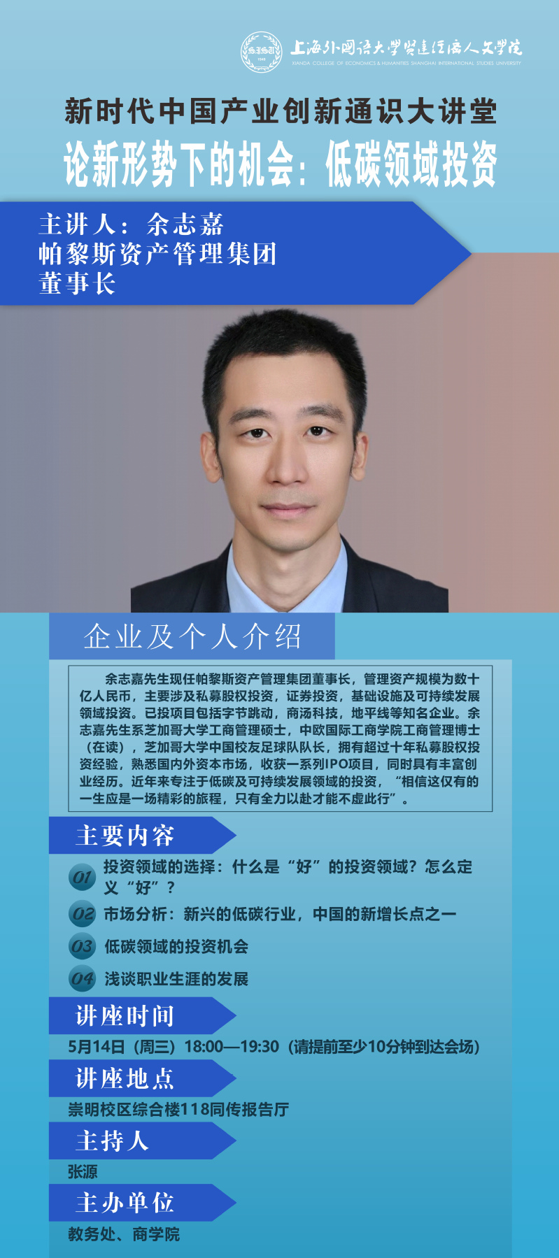 5月14日 余志嘉:论新形势下的机会:低碳领域投资(新时代中国产业创新通识大讲堂)