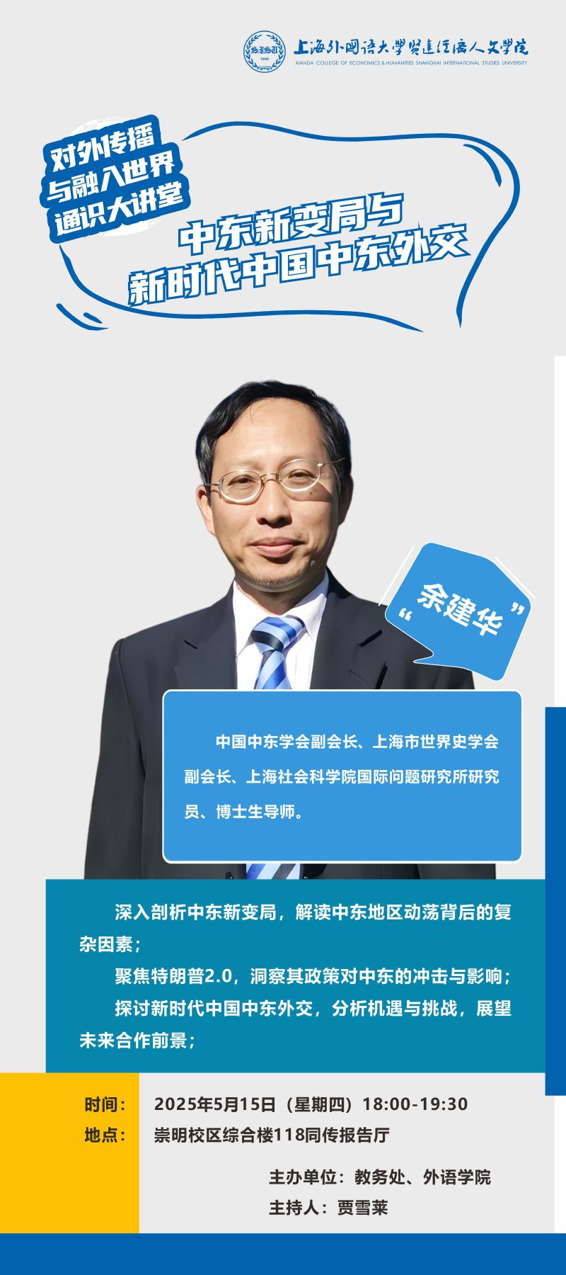 5月15日 余建华:中东新变局与新时代中国中东外交(对外传播与融入世界通识大讲堂)