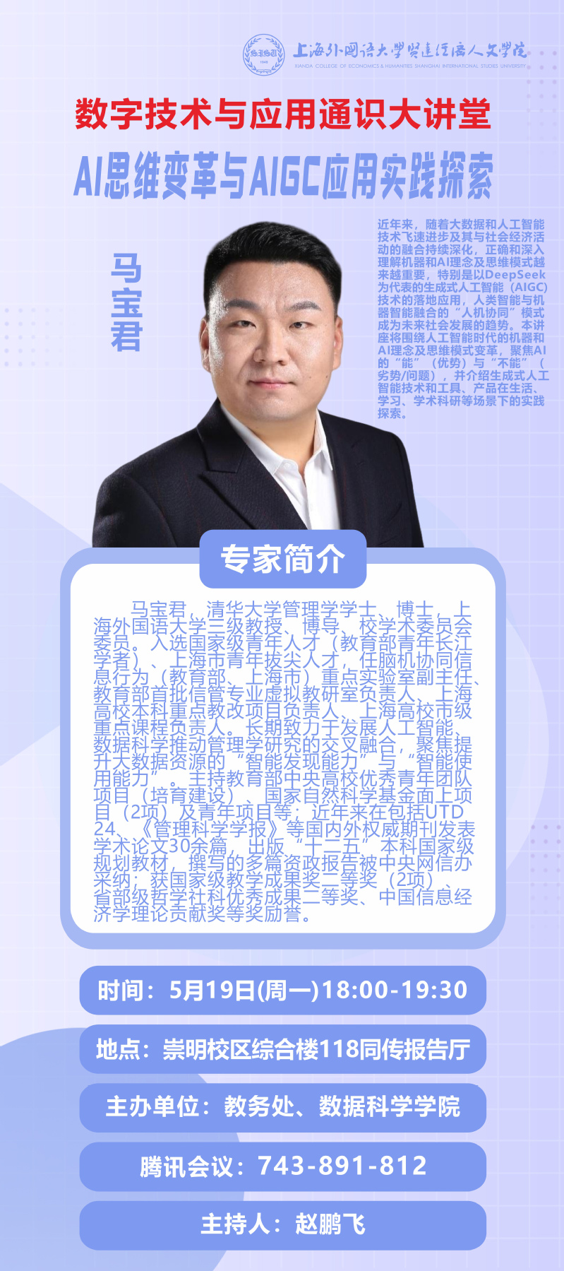 5月19日 马宝君:AI思维变革与AIGC应用实践探索(数字技术与应用通识大讲堂)