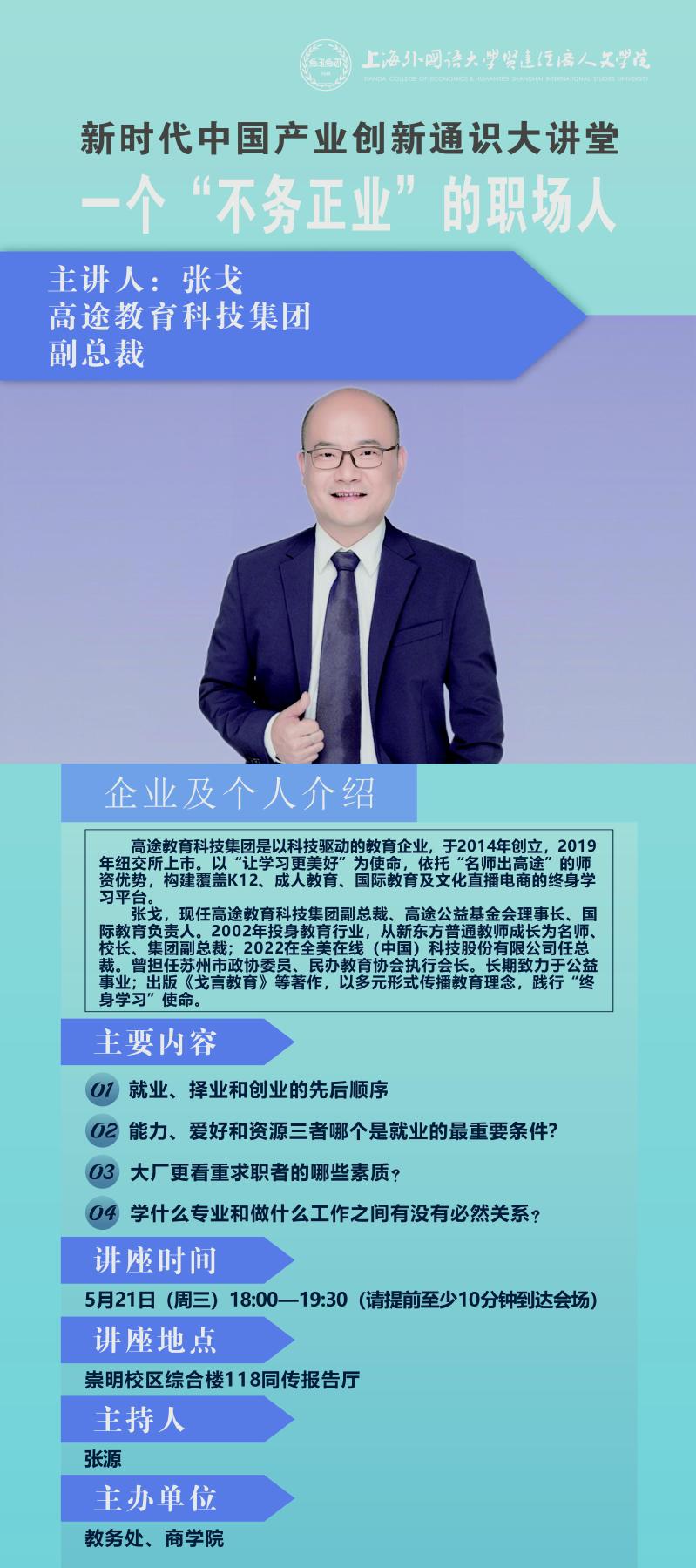 5月21日 张戈:一个“不务正业”的职场人(新时代中国产业创新通识大讲堂)