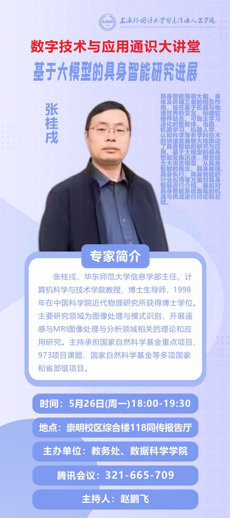 5月26日 张桂戌:基于大模型的具身智能研究进展(数字技术与应用通识大讲堂)