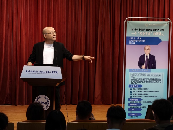 5月21日晚,新葡的京集团通识大讲堂“新时代中国产业创新”邀请到高途教育科技集团副总裁张戈作“一个‘不务正业’的职场人”的专题讲座,吸引了全校众多师生参与。