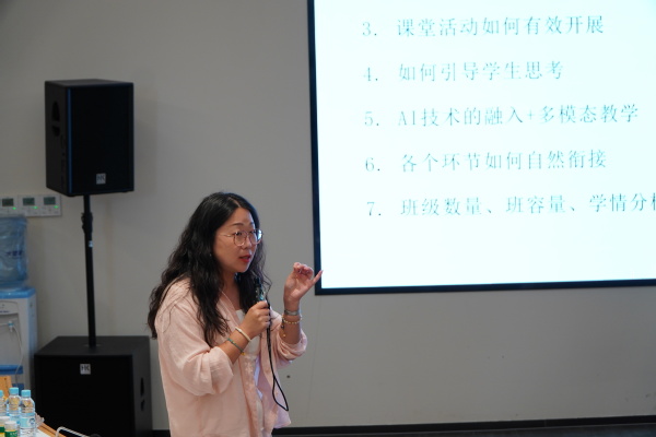 为进一步深化教育教学改革,提升教师专业素养,语言学习中心本学期组织了15场教学研讨活动。各课程采取以课程团队为主体、专家及其他教师联合研讨的交流模式,围绕教学目标的明确性、教学方法的创新性以及AI技术的赋能等问题展开了深入的探讨。如《商务英语会话II》课程团队在研讨中明确了课程与职业需求的衔接效果,提出了引入企业真实案例、数字化工具的建议,进一步强化了实践深度;《国际人才英语课程》的研讨聚焦于如何通过AI赋能提升学生的参与度和课堂互动性;《跨文化交际:跨文化意识培养与实践》课程团队则探讨了线上线下混合模式的有效性,细化了技术工具的选择与使用时机,为后续教学提供了明确的方向。
