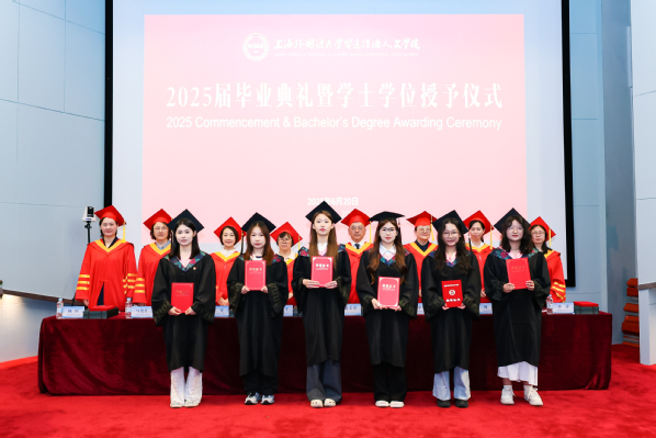 6月20日上午,上外贤达学院2025届毕业典礼暨学士学位授予仪式在虹口校区行政楼报告厅举行。校党政领导班子全体成员出席本次典礼。各二级学院党政领导、相关职能部门负责人、教师代表、校友代表、毕业班辅导员、毕业生家长代表和2025届毕业生代表参加典礼。毕业典礼由副校长陈应主持。