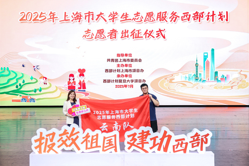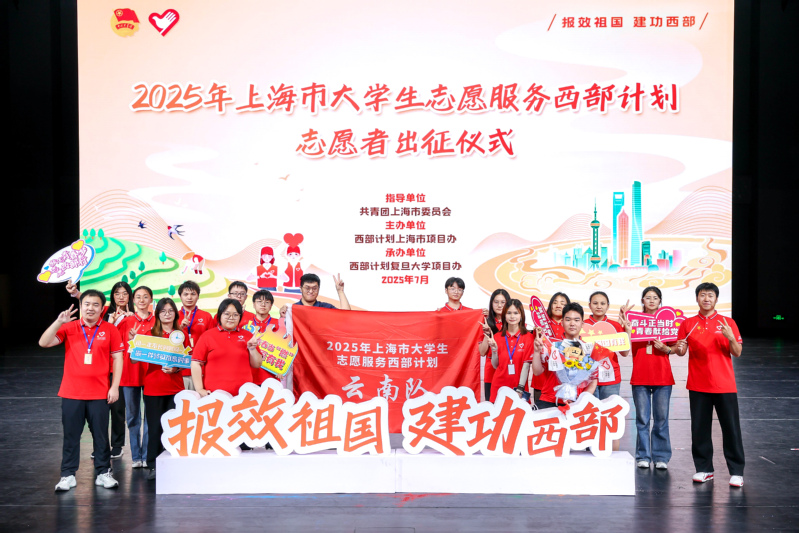 7月9日,2025年上海市大学生志愿服务西部计划志愿者出征仪式在复旦大学相辉堂举行。出征仪式上,新时代青年的使命担当被深刻诠释,为志愿者们筑牢了思想根基;铿锵有力的志愿者宣誓,更坚定了俞柏岑奔赴基层的决心。