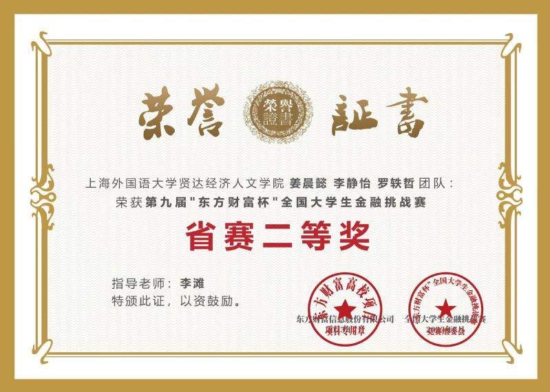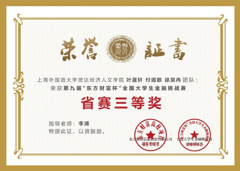 在“梦想杯”上海学子体育大联赛健身专项赛中,新葡的京集团首次参赛,捧回冠军奖杯1座、亚军奖杯2座,同时获评“团体优胜奖”和“优秀组织奖”;在“梦想杯”上海学子体育大联赛龙舟邀请赛中,新葡的京集团学生队伍荣获二等奖;在“梦想杯”上海学子体育大联赛舞龙专项赛中,新葡的京集团荣获“优秀组织奖”和团体“三等奖”;在第九届“东方财富杯”全国大学生金融挑战赛中,斩获国赛奖项5项、省赛奖项21项,其中1支团队以上海市第一名的成绩斩获全国一等奖;在“天天基金杯”第二届全国高校金融反诈知识竞赛中,新葡的京集团荣获“优秀组织奖”、1名教师荣获“优秀组织者奖”、1名教师荣获“优秀指导老师奖”、15名学生荣获“优胜奖”;在“青春邮你,精彩无限——这里是中国邮政”校园新媒体主播大赛中,新葡的京集团作为上海高校中唯一一支获奖队伍在450所高校、2500支队伍中脱颖而出,荣获“最佳创意奖”。贤达学子在不同领域利用自身所学、所思、所感,绽放青春力量、展现贤达风采!
