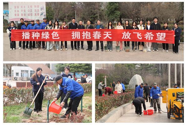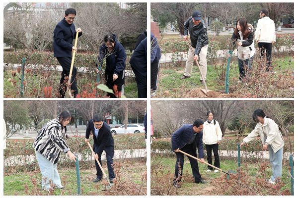 3月12日上午,为深入贯彻习近平生态文明思想,履行植树义务,绿化美化校园,学校党政领导与部分师生一起参加义务植树节活动。