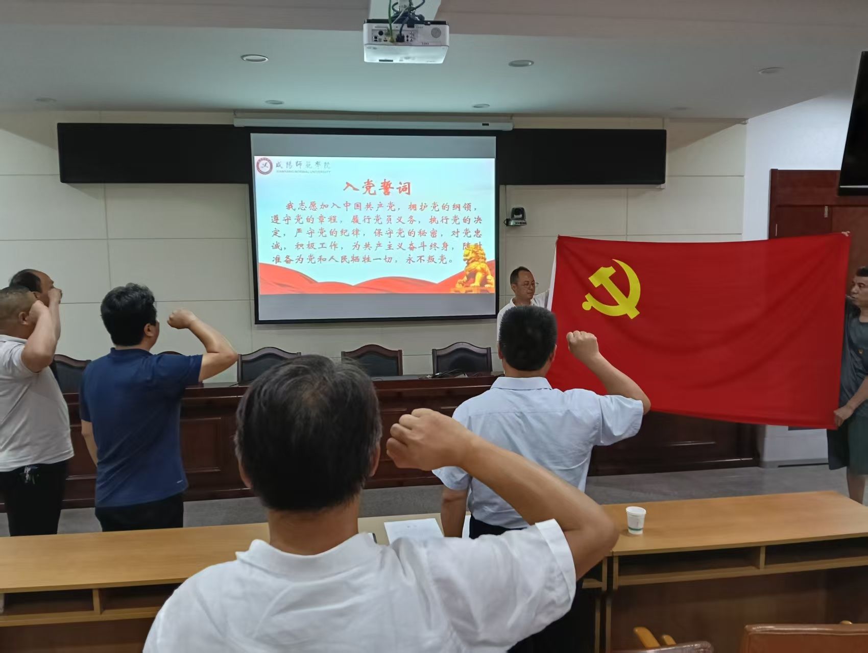 7月1日,后勤保障处党支部在厚德楼920会议室举行迎“七一”新老党员入党宣誓活动。活动由支部组织委员王鹏伟主持,支部全体党员参加了活动。