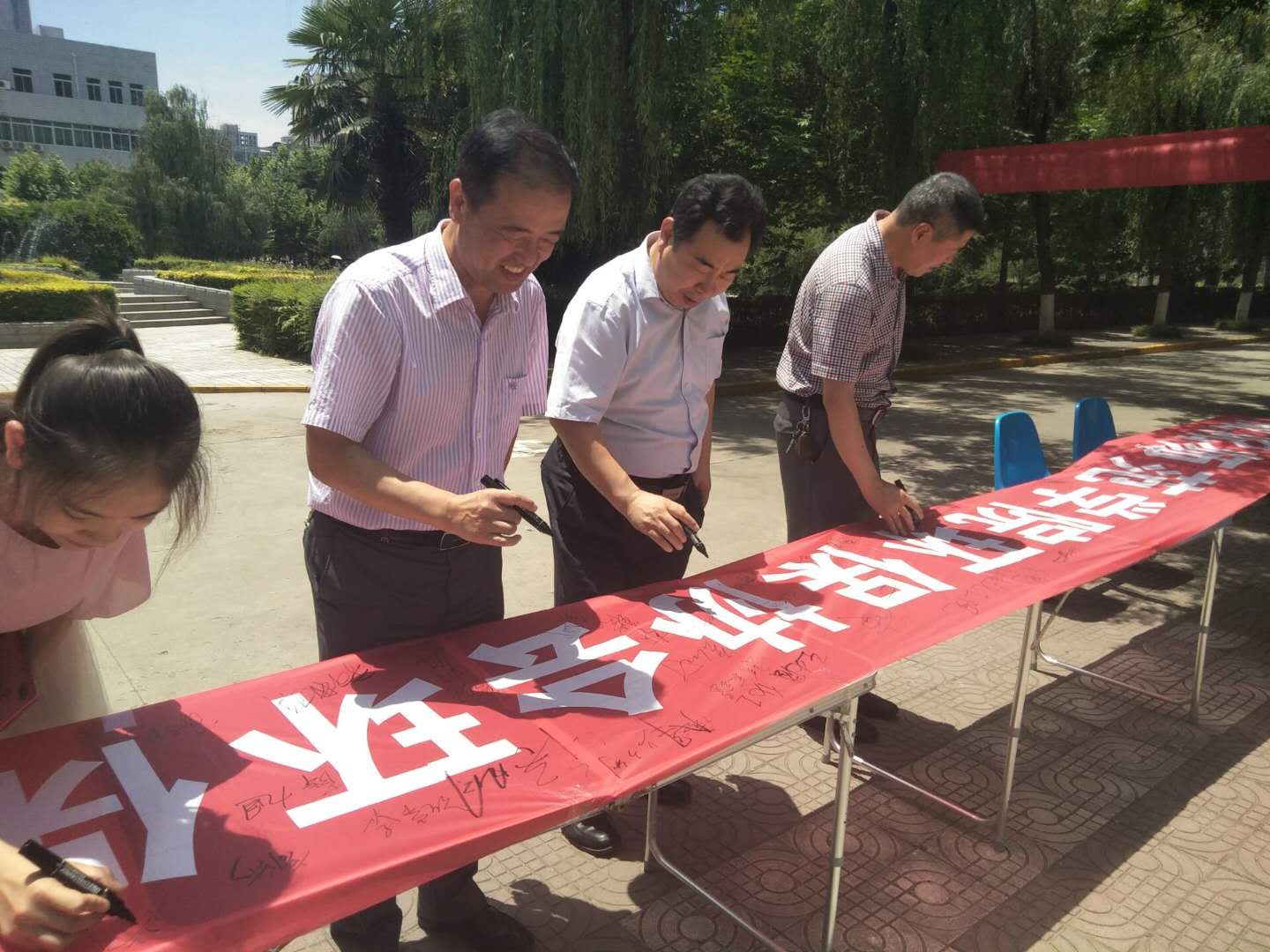 在签名活动中,副校长吕广利及后勤管处相关领导,亲临签名现场,不仅郑重签名,做出了承诺和表率,而且还对该项活动的开展进行了悉心的指导。