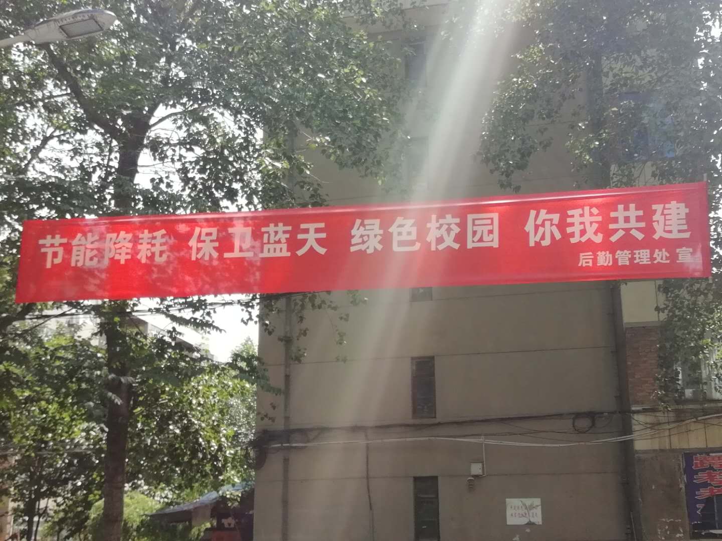 其次,后勤管理处及学生环保社团还通过学校广播、电子屏滚动字幕、印制及发放宣传材料、悬挂横幅、制作宣传版面、在各个宿舍楼及部分教学楼的卫生间、水房处张贴节能环保标语等方式,大力宣传节能环保知识,使大家做到节能降耗,保卫蓝天,树立“低碳”理念,增强环保意识,不断创建绿色校园。