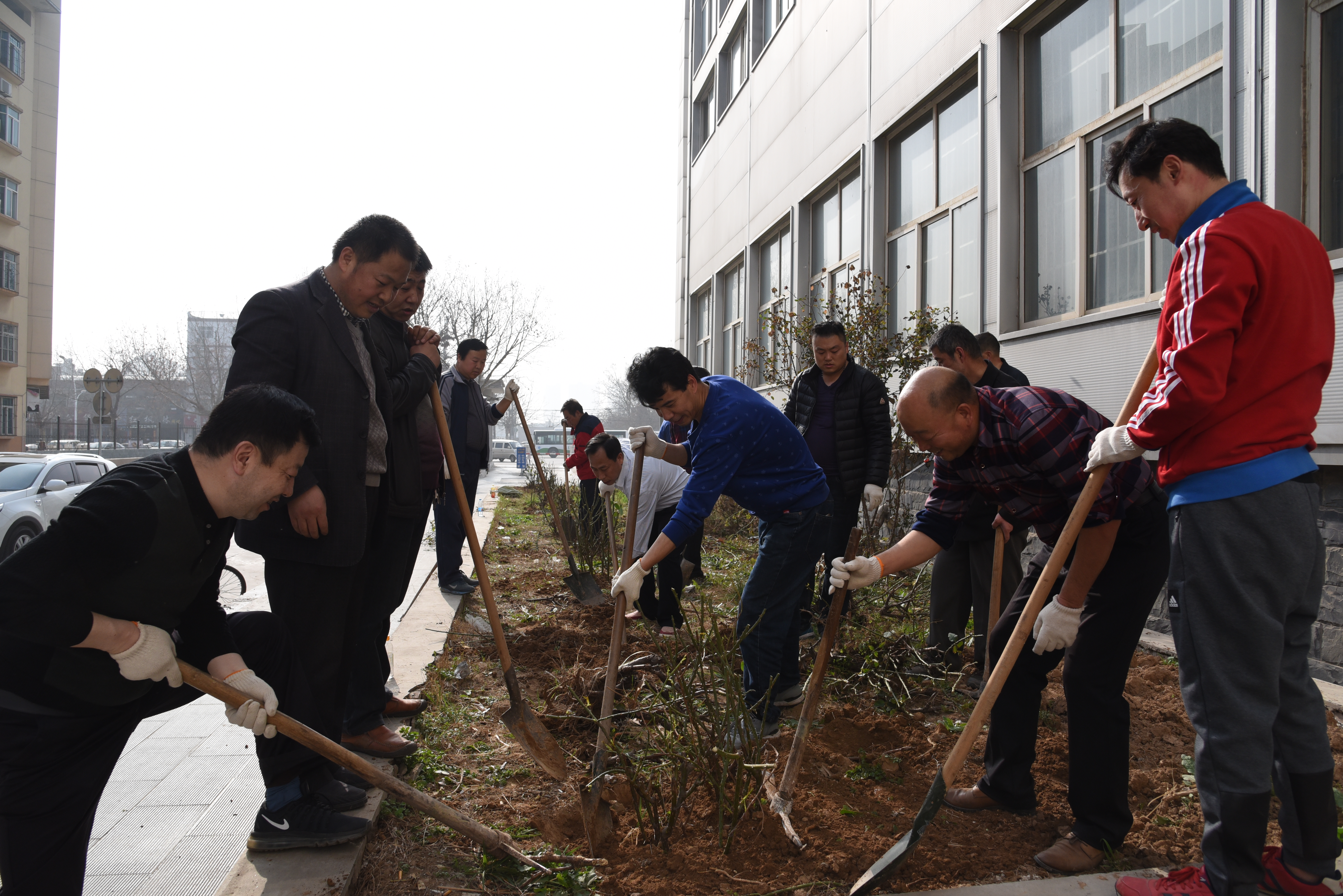3月12日下午,后勤处(集团)组织开展了义务植树活动。校园管理中心的全体同志和后勤处(集团)其他科室的义务植树人员在后勤处领导的带领下,一起参加了植树活动。